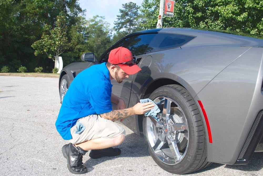(Hand wash, wax, dress tires & trim, door jambs, outside windows, chrome polish, and wheels detailed)